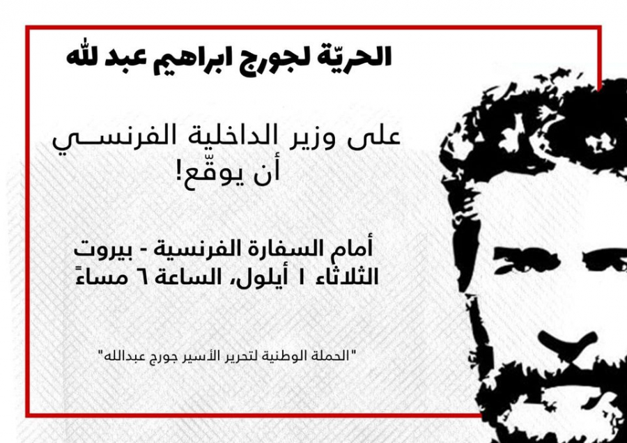 وقفة تضامنية مع جورج عبدالله أمام السفارة الفرنسية في بيروت غداً