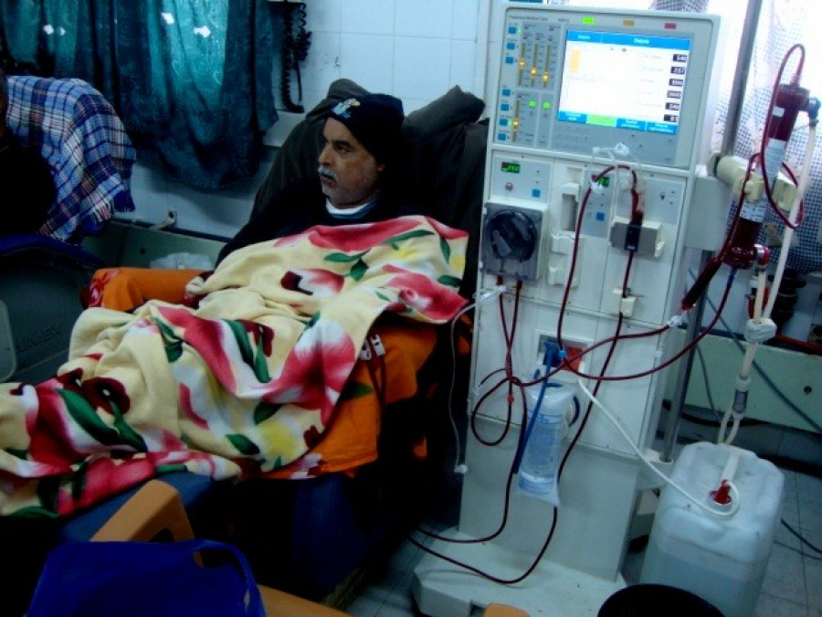 ويُعاني 820 مريضًا في قطاع غزة من الفشل الكلوي، وتجرى لمعظمهم عمليات غسيل الكلى في مجمّع الشفاء الطبي، وتمكث غالبية المرضى حتى ساعات الفجر الأولى أثناء عملية الغسيل بسبب تزايد عددهم وعدم توفّر أجهزة غسيل الكلى بشكلٍ دائم.