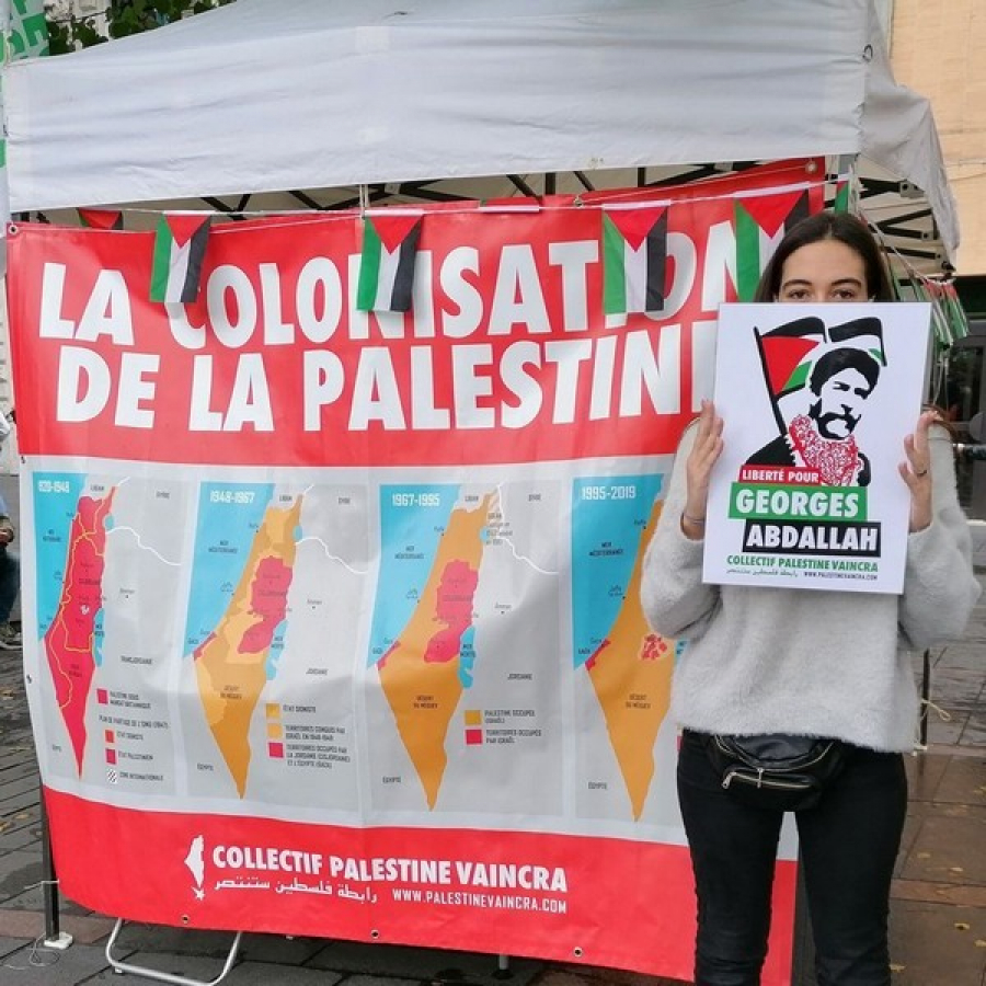 وفي سياق الحملة المساندة للمناضل عبدالله، علق ناشطون من رابطة فلسطين ستنتصر عشرات الصور للمناضل جورج عبدالله على جدران مدينة تولوز الفرنسية.